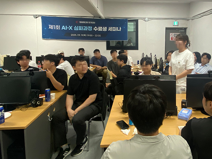 제1회 AI-X 심화과정 수료생 세미나 안녕하세요. 지난 11일, 하이미디어 아카데미 강남AI점에서 '제1회 AI-X 심화과정 수료생 세미나'가 열렸습니다. 취업생 및 수료생 총 50명이 참석하였으며취업 성공 사례와 취업 준비시 필요한 내용에 대한 설명을 나누고자유 네트워킹 시간도 가졌습니다. 앞으로도 여러분의 취업 성공을 위해 노력하겠습니다 감사합니다.