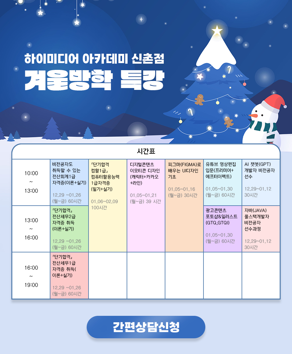 하이미디어 신촌캠퍼스 겨울방학 특강