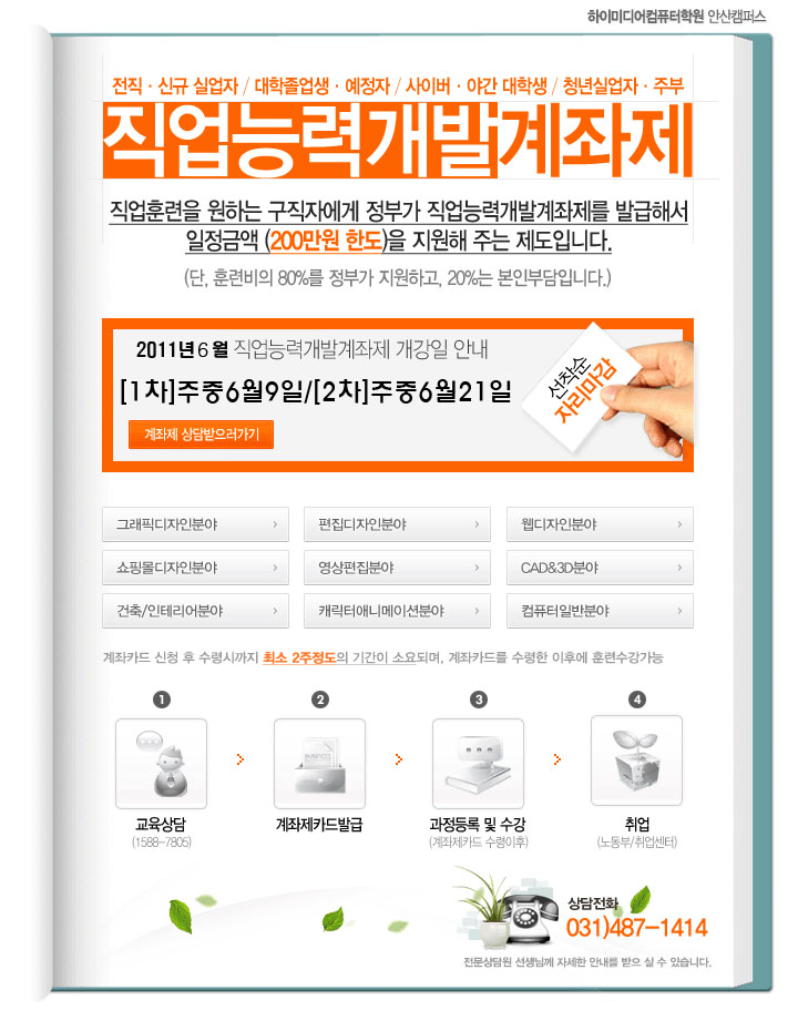 지점을 선택하세요 강남 강남AI 종로 신촌 구로 노원 안양 안산 성남 구리 일산 김포 동탄 남양주 강릉 교육과정을 선택하세요 웹디자인·웹퍼블리셔 편집디자인·영상편집 전산세무회계·ERP IT·프로그래밍 국가기간전략산업훈련 (디지털디자인)생성형AI 활용 UI/UX 반응형 웹디자인&웹퍼블리셔 취업과정 실업자 취업을 위한 웹디자인&웹퍼블리셔 양성과정 교육과정선택(5개과정만 문의가능) 지점을 선택해주세요 내용을 작성해주세요 이 름 휴대폰 번호 이메일 주소 문의하실 내용 개인정보 수집동의 [개인정보수집및 이용동의 안내]