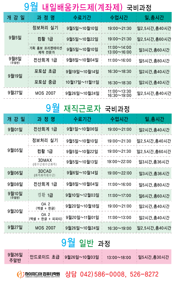 [정규개강]9월 일정안내입니다.(대전캠퍼스)