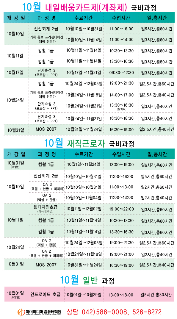 [정규개강]10월 개강일정입니다.(대전캠퍼스)
