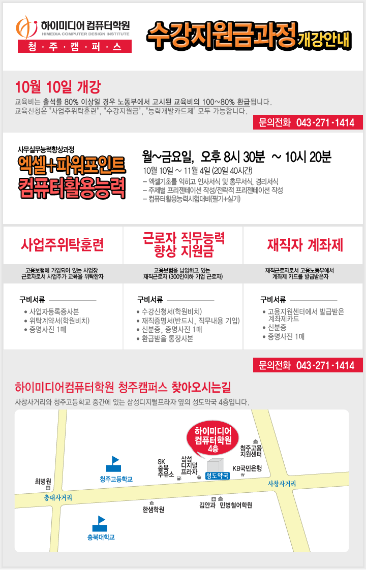 [수강지원금] 10월 10일 엑셀+파워포인트 개강안내
