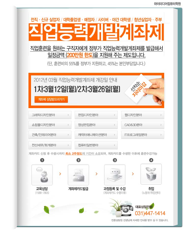 지점을 선택하세요 강남 강남AI 종로 신촌 구로 노원 안양 안산 성남 구리 일산 김포 동탄 남양주 강릉 교육과정을 선택하세요 웹디자인·웹퍼블리셔 편집디자인·영상편집 전산세무회계·ERP IT·프로그래밍 국가기간전략산업훈련 (디지털디자인)생성형AI 활용 UI/UX 반응형 웹디자인&웹퍼블리셔 취업과정 실업자 취업을 위한 웹디자인&웹퍼블리셔 양성과정 교육과정선택(5개과정만 문의가능) 지점을 선택해주세요 내용을 작성해주세요 이 름 휴대폰 번호 이메일 주소 문의하실 내용 개인정보 수집동의 [개인정보수집및 이용동의 안내]