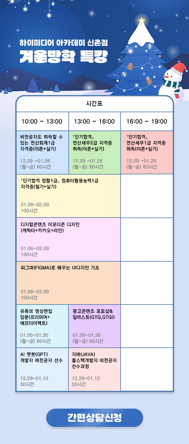 하이미디어 신촌캠퍼스 겨울방학 특강